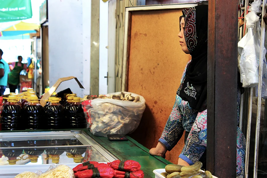 A woman at her stall in Dordoy Bazaar in Bishkek, Kyrgyzstan