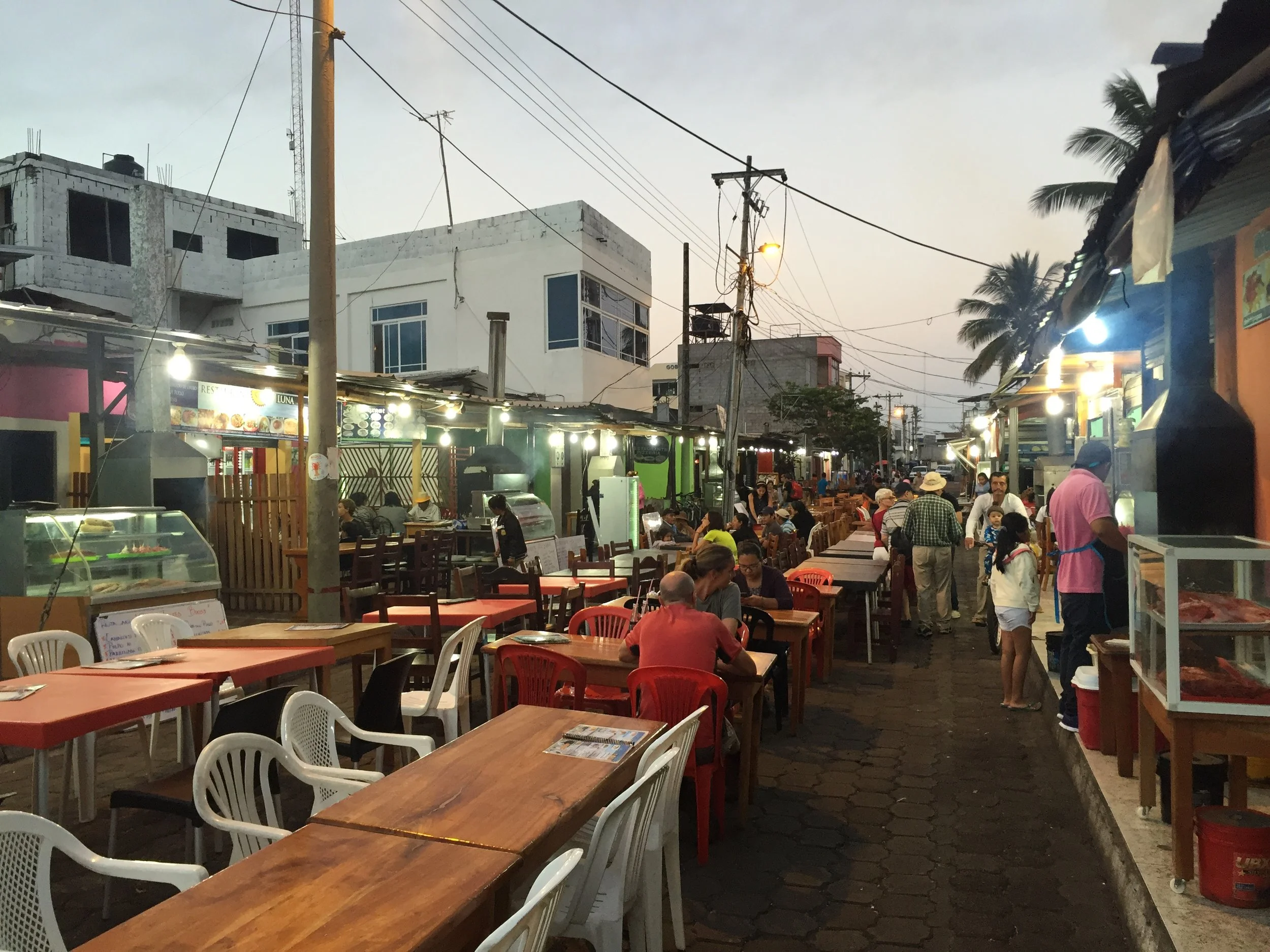Kiosks serving up inexpensive eats on Charles Binford in Puerto Ayora
